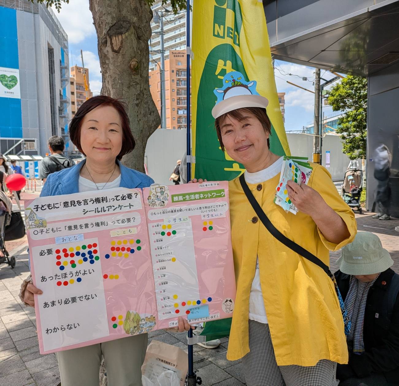 2026.04.26 子どもに「意見を言う権利」って必要? ーアンケート協力のお願いー 練馬・生活者ネットワークでは、「子どもに『意見を言う権利』って必要?」についてアンケート調査を行っています。 お子さんの意見をお聞きしたいと思います。保護者の方のご協力をお待ちしています。 WEBグーグルフォームで回答はこちら 4月26日、石神井公園駅付近でのアンケート結果。 Share 「対話による区政」の実現に期待します ~練馬区長選挙を終えて~